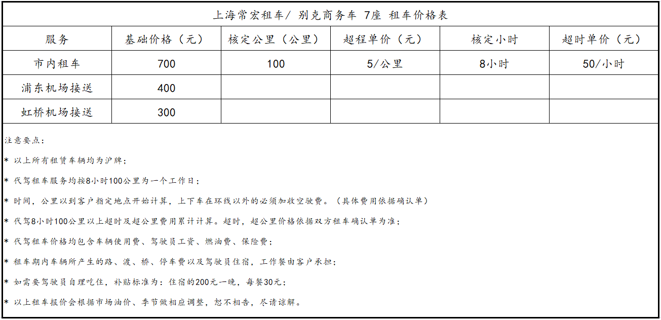 * 以上租车报价会根据市场油价、季节做相应调整,恕不相告,尽请谅解。